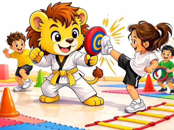 Children are introduced to basic Taekwondo movements through interactive drills and enjoyable group challenges designed for all skill levels.